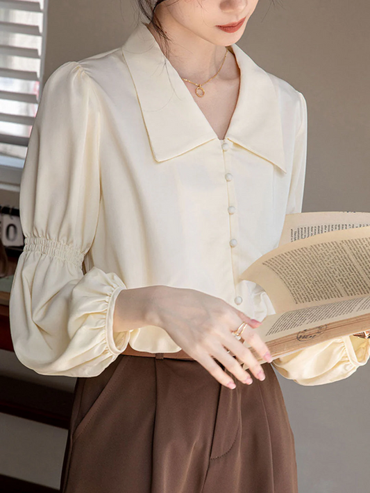 Althea Blouse | Classic Lapel Balloon Sleeve Blouse