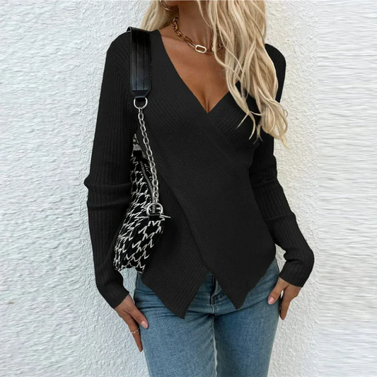 Annabelle Sweater | Asymmetrical Cross-Front Knit Sweater