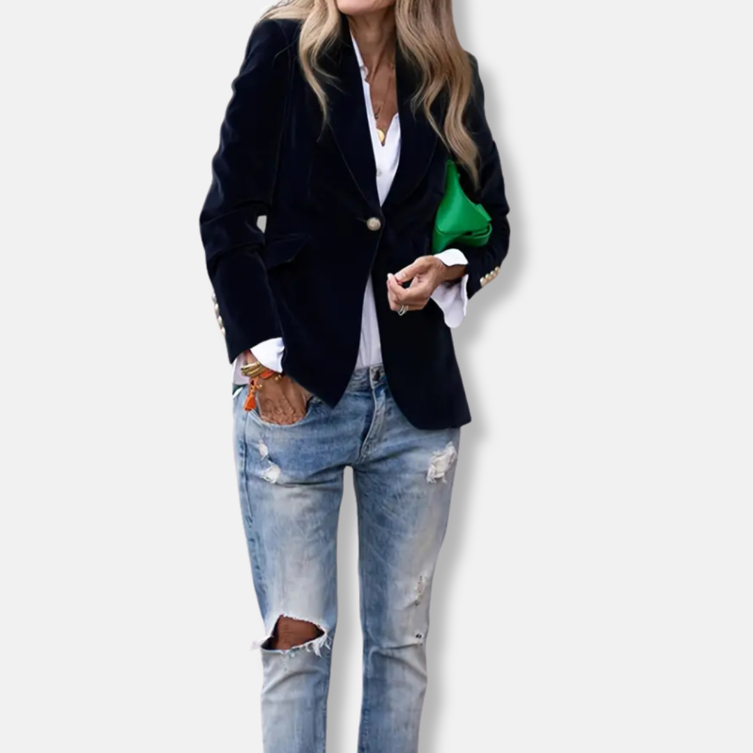 Isla Tailored Blazer | Gold Button Accent Lapel Collar Blazer