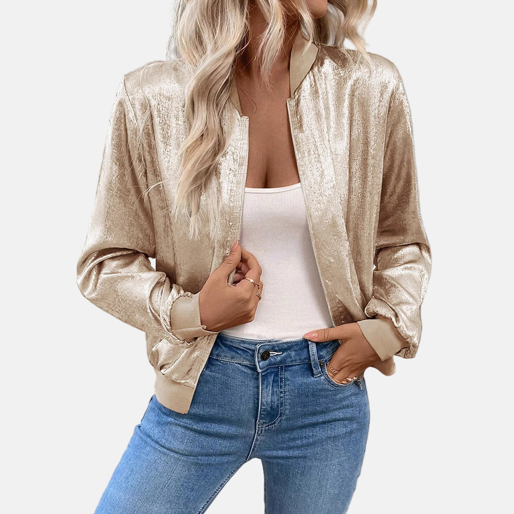 Sienna Bomber Jacket | Relaxed Fit Textured Hip-Length Jacket